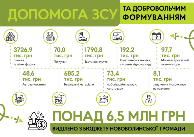 У 2022 році з бюджету Нововолинської громади спрямували понад 6,5 мільйонів гривень на підтримку ЗСУ, територіальної оборони та добровольчих формувань.