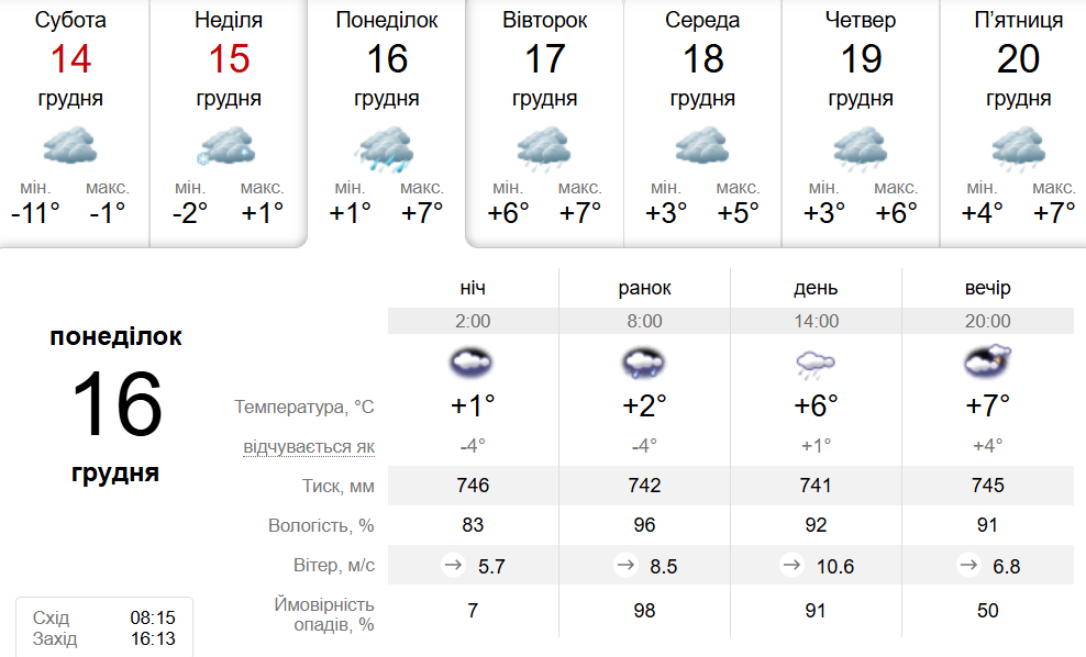 Грудень виявився чудернацьким на природні сюрпризи. Після лютих морозів у суботу неділя ознасенувалася підвищенням температури, а початок нового робочого тижня взагалі буде мокрим!