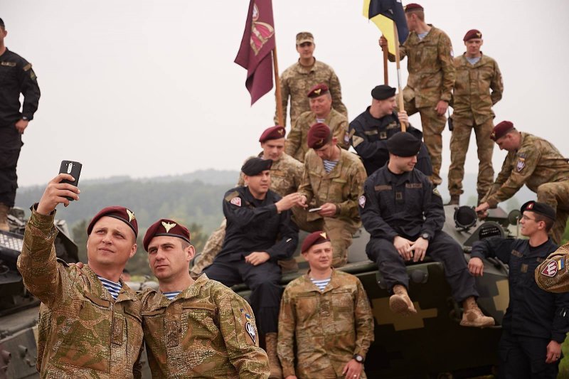 На фото з порталу «Ukrmilitary.com»: після напружених бойових тренувань – селфі на