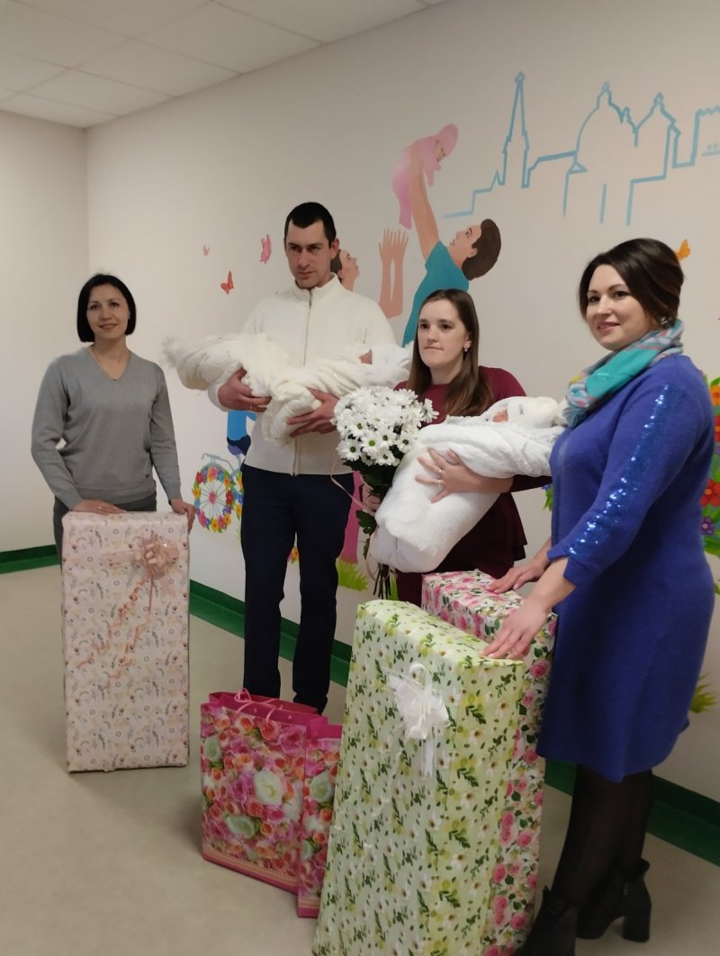 «Представники міської ради у складі секретаря Орисі Максимець, начальника служби у справах дітей Ольги Градової, завітали у КП «Волинський бласнийперенатальний центр» з подарунками, щоб привітати молоде подружжя з народженням трійнят», – йдеться в повідомленні.