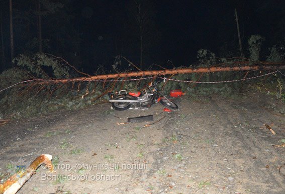 «Jawa», врізався в повалене над дорогою буревієм дерево.