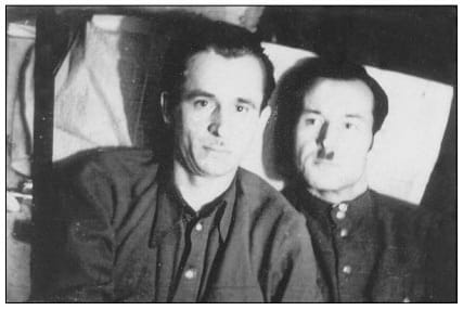 На фото з «Вікіпедії» та архіву: група українських патріотів, Микола Козак зліва у верхньому ряду; Максим Рильський у 1928 р.; розстрільна команда енкаведистів; Микола Козак (зліва) з невідомим побратмом; кадровий енкаведист віктор дроздов; Людмила Фоя; посмертне фото «Смока».