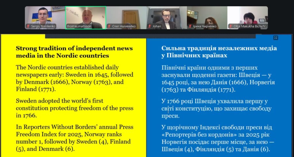 На фото Інформаційної служби НСЖУ: під час роботи українсько-шведського медіафоруму.