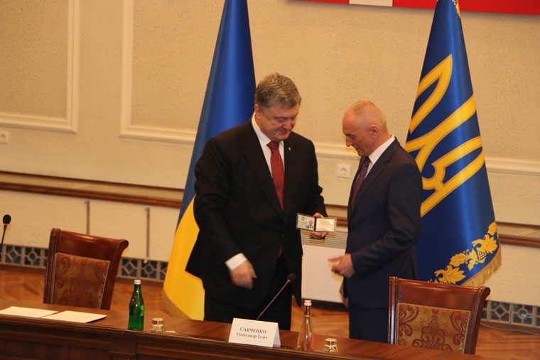 КОНОНЧУК: Петро Порошенко вручає посвідчення Олександрові Савченку.