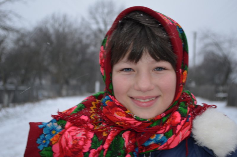Вони колядували не так майстерно, як нинішні діти. Зазвичай – «Ісусика» (такої дитячої колядки, як у нашому селі, я більше ніде й ніколи не чула) чи «Нову радість», ну в кращому випадку «Добрий вечір тобі». Але скільки радості було, коли в жменю падали зароблені копійки!.. Колядники виходили в сіни, а я вже ждала наступних… А за вікном у ці дні – незмінні пейзажі. Вийдеш за калітку – дорогою наше мурашки розбігаються у двори. Чорні – це хлопчаки. Ті, що з яскравими головами – дівчата у хустках. Заходять у двір несміливо, а викочуються звідти, мов горох. І одразу голови – в жменьки: «А скільки хто кому дав?..».