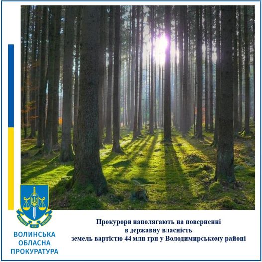 Володимирська окружна прокуратура звернулася до суду з чотирма позовами в інтересах держави в особі Волинської обласної військової адміністрації, аби витребувати з приватної власності громадян та повернути в державну власність земельні ділянки площею майже 7 га й вартістю 44 мільйони гривень.