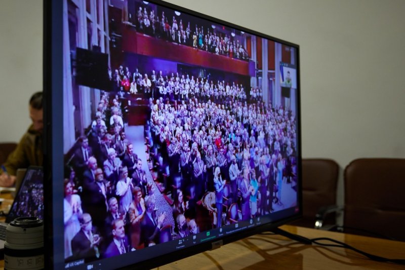 із зображенням американських конгресменів, які слухали Володимира Зеленського,