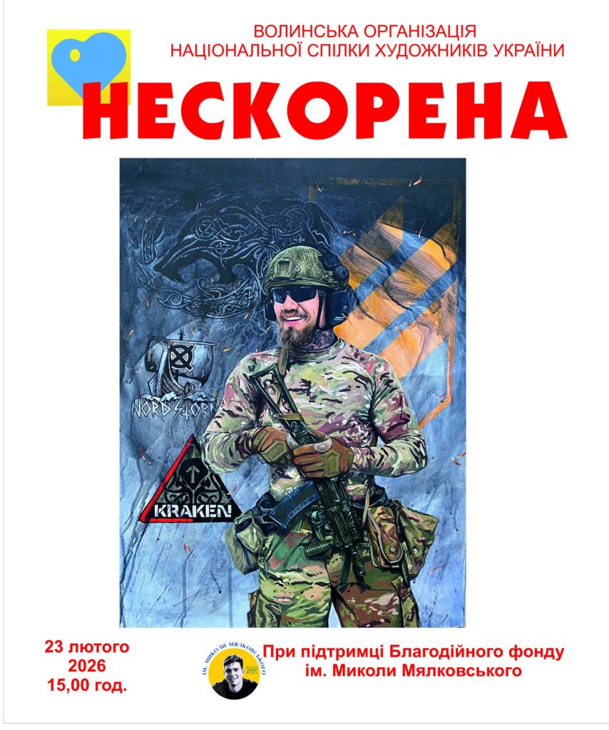 У Луцьку відкрилася виставка «Нескорена», організована Волинською організацією Національної спілки художників України за підтримки Благодійного фонду імені Миколи Мялковського. Її кураторкою стала художниця та засновниця артстудії «П’ятерня» Тетяна Мялковська.