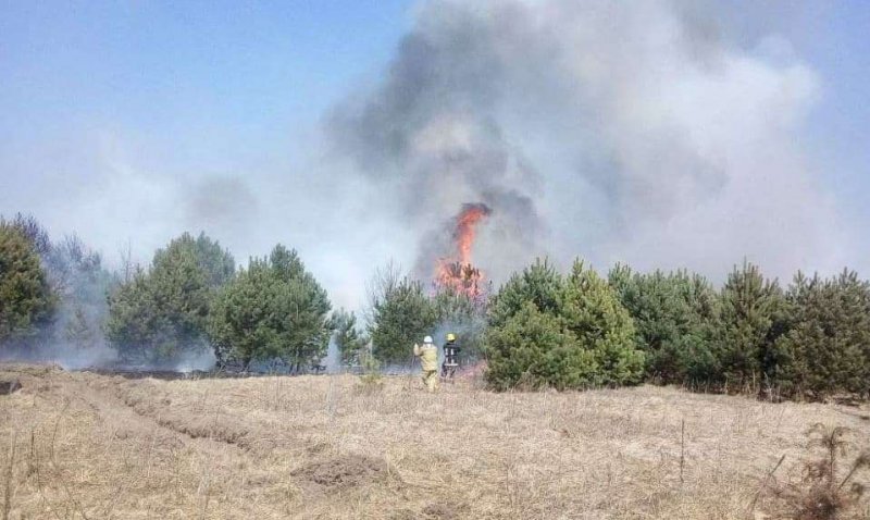та низового лісу на площі 0,3 га. На гасіння пожежі виїжджали місцева пожежа