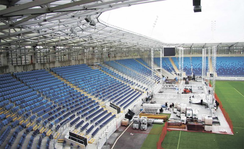 монтаж сцени для виступу артистів на «Люблін-арені» – на завершальній стадії.