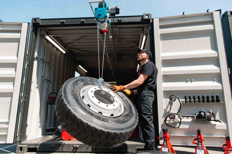 У «Діда» мобільна шиномонтажна майстерня облаштована усім необхідним для заміни те ремонту коліс.