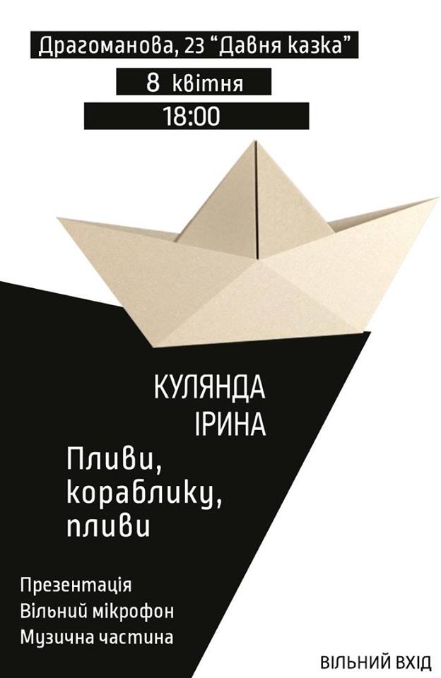 квітня в Луцьку презентуватимуть збірку поезій молодої авторки Ірини Кулянди «Пливи,