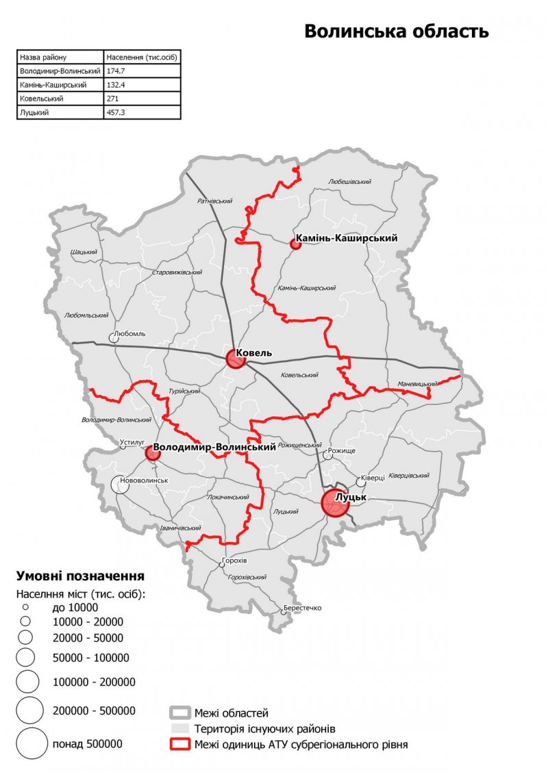 нових майбутніх районів Волині. Замість існуючих 16-ти буде лише 4!