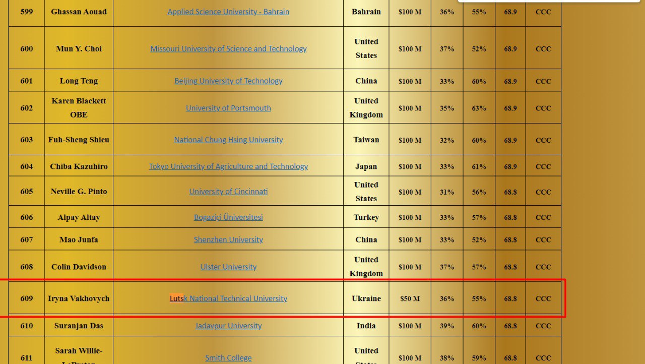Ректор Луцького національного технічного університету Ірина Вахович потрапила до світового рейтингу кращих очільників закладів вищої освіти у 2023 році. Вона посіла другу позицію із числа 32-ти ректорів українських ЗВО, представлених у рейтингу.