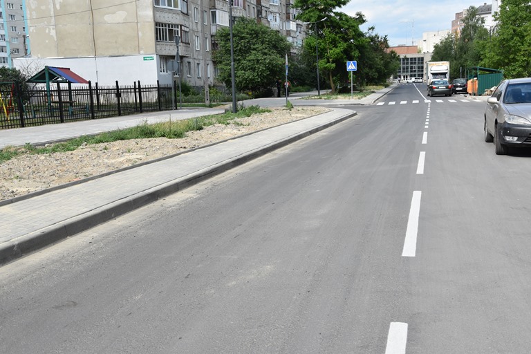 от на вулиці Агатангела Кримського уже всюди новеньке асфальтне покриття,