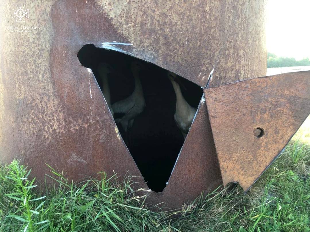 Недіюча водонапірна вежа і звите на ній лелече гніздо – картина, яку бачив чи не кожен. Проте коли четверо молодих лелек разом з гніздом провалилися усередину старої іржавої конструкції – це привід викликати рятувальників.