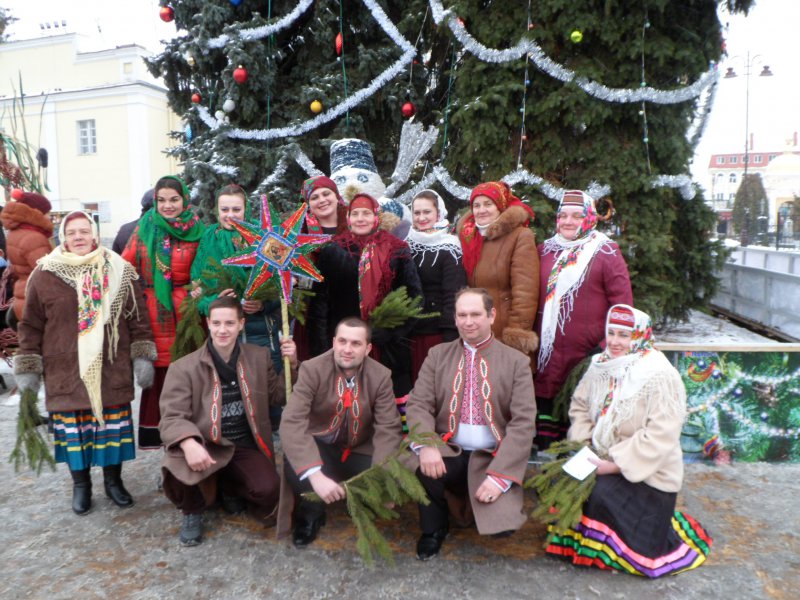 Виступали колективи з різних районів області. Усе було як годиться – різдвяні зірки, національні строї. Серед гуртів – народний фольклорний аматорський колектив «Писанка» Рожищенського будинку культури та вокальний народний гурт «Намисто». «Писанка» нещодавно повернулася із Києва, де виконувала волонтерську місію – відвідали військовий госпіталь із концертною програмою, аби привітати усіх бійців зі світлим святом. Також зібрали кошти – понад 30 тис. – для потреб Луцького військового госпіталю. Найстарший учасник колективу – 85-літній політв’язень Ананій Добровольський, який був 15-річним засланий разом із усією сім’єю до Сибіру за те, що допомагав УПА. Співає разом із Ананієм Тимофійовичем і його донька Валентина Добровольська, народжена на холодних просторах Сибіру, котра й керує «Писанкою».