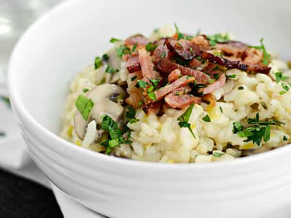 Готове різотто викладаємо на блюдо, помістивши в поглиблення нарізаний язик.