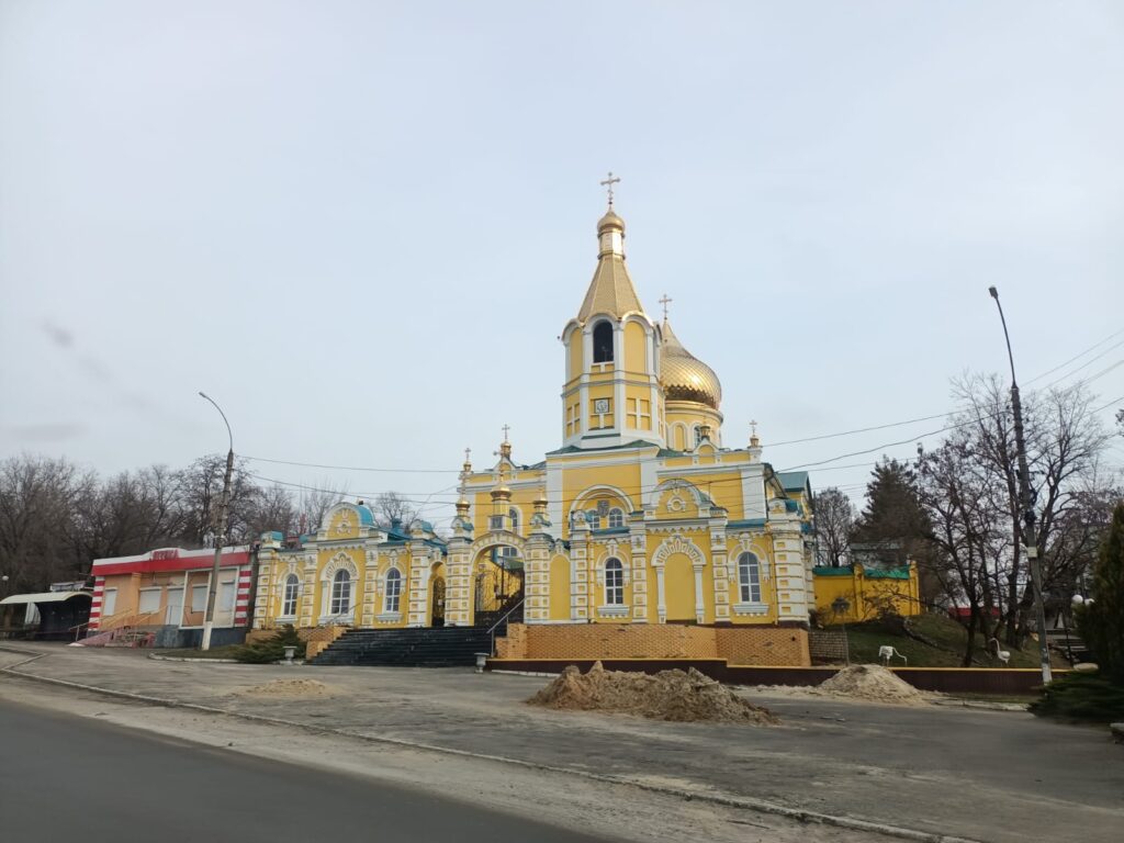 На фото автора: один із найбільших храмів промосковських сутаноносіїв – луцький Собор усіх Святих Землі Волинської; пошкоджений російськими окупантами храм упц (мп) в м. Куп’янськ на Харківщині.