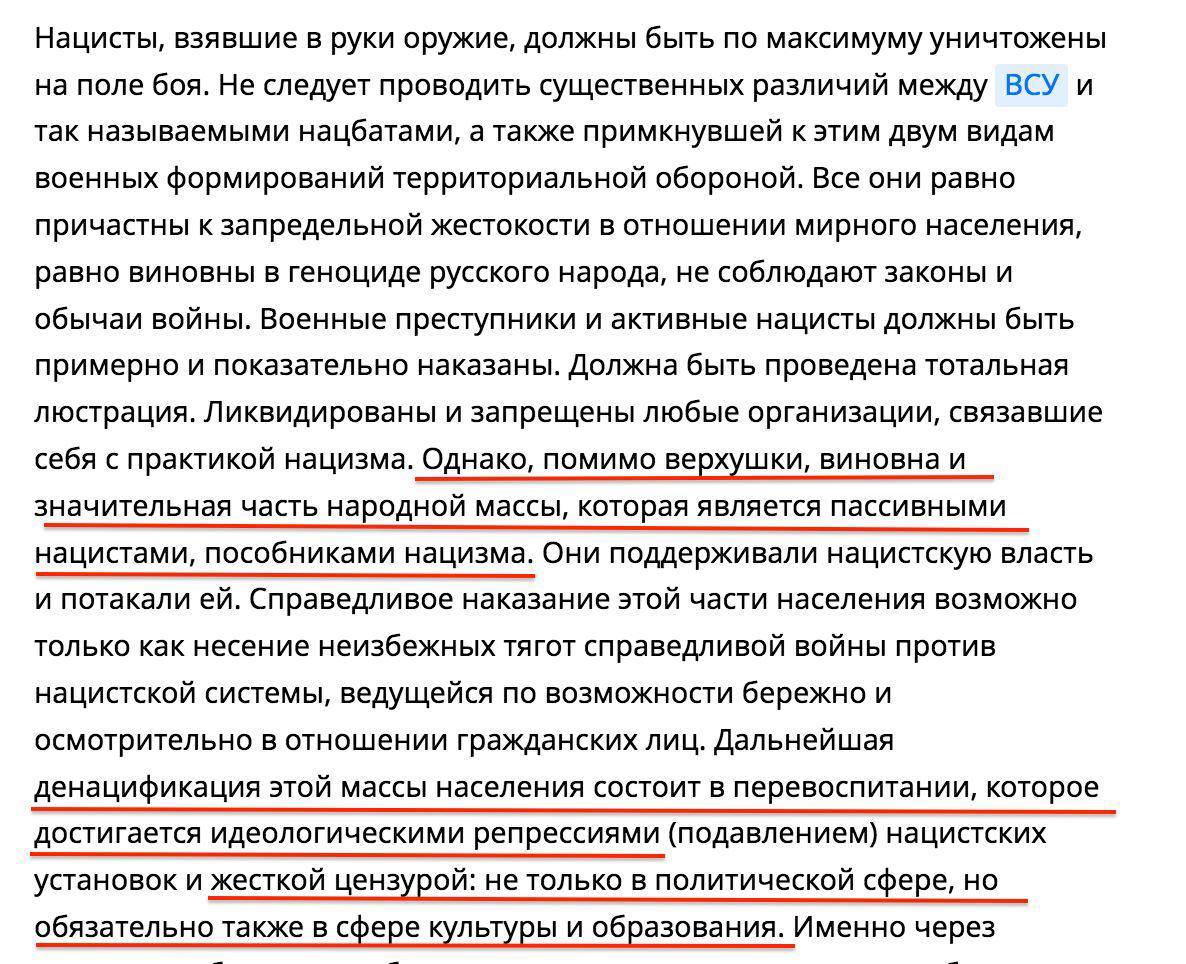 Тут відкрито доводять необхідність етноциду. Йдеться
