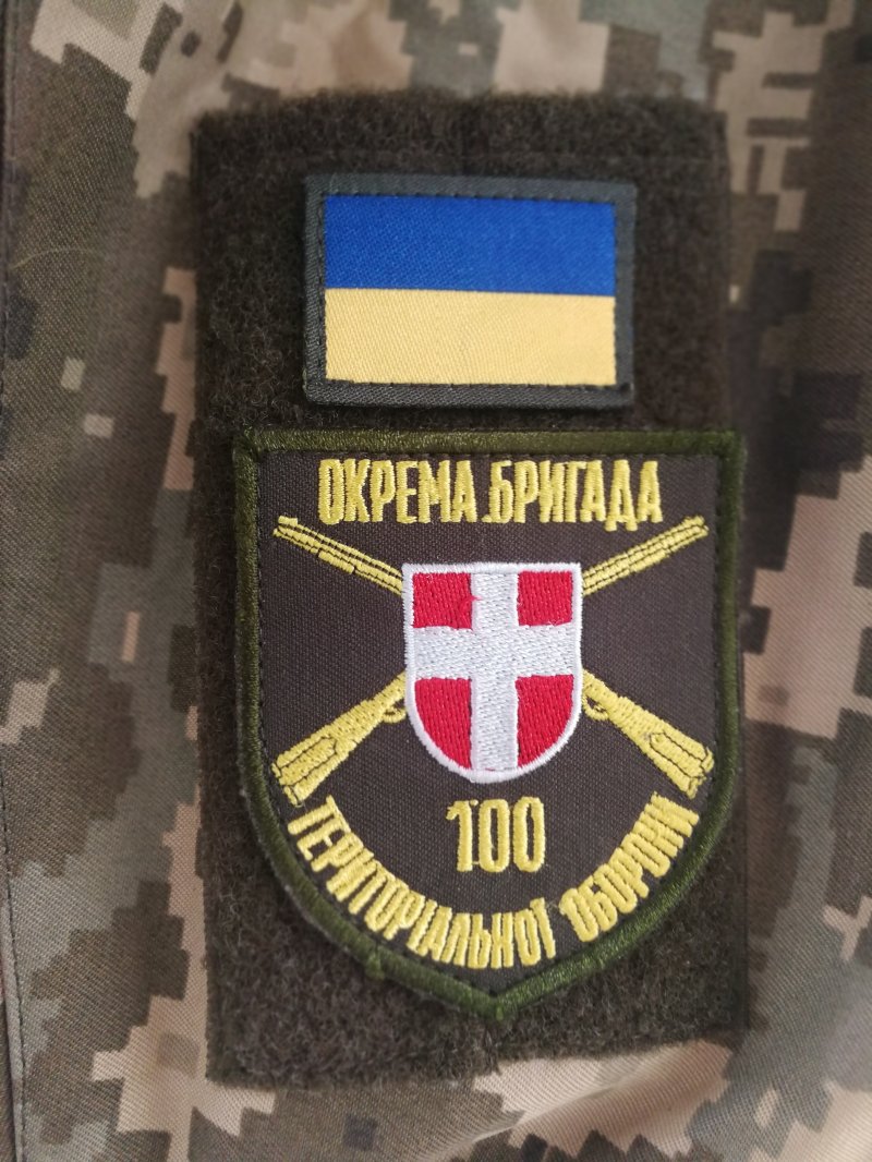 На фото Романа УСТИМЧУКА: шеврон попереднього зразка волинської 100 Окремої