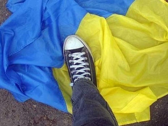 Прапор України та потоптався по ньому. Трапився інцидент вночі 3 липня.