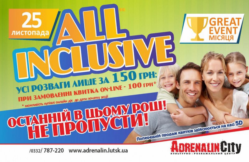 вартість усіх розваг становить 150 гривень. При замовленні квитка онлайн, він