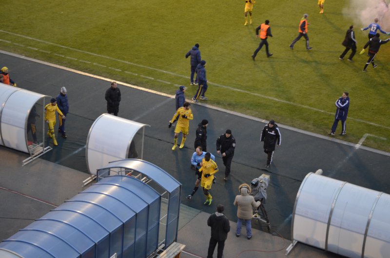й спричинили дострокове припинення поєдинку. Коли з фанзони почали вибігати на