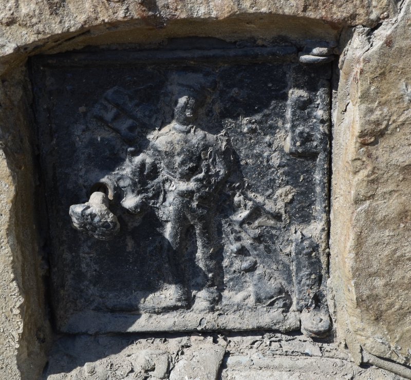 «Чорний чоловічок» тримає у руках мітлу, на голові має капелюха. Очевидно, отвори й передбаченні для можливості чистити сажу.