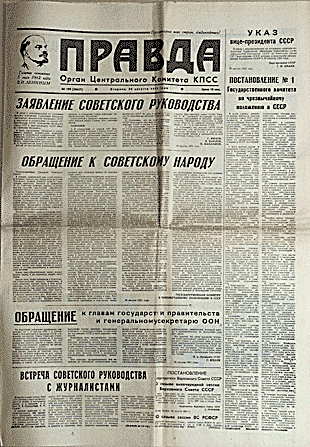 фото порталу «Агіт-клуб»: московська газета «Правда» з документами ГКЧП.