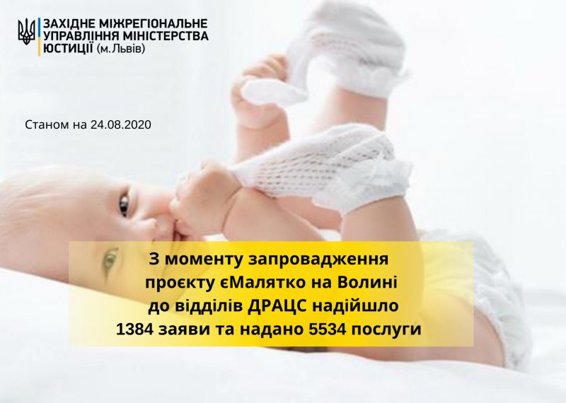 сервісу єМалятко на Волині, станом на 24серпня 2020
