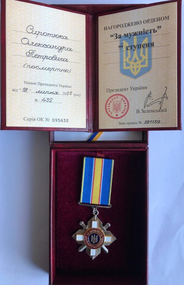 «Відповідно до Указу Президента України № 432 від 18.07.2023 року за особисту мужність, виявлену у захисті державного суверенітету та територіальної цілісності України, самовіддане виконання військового обов’язку солдата Сиротюка Олександра Петровича, 1984 р. н., жителя села Сильне, нагородили орденом «За мужність» III ступеня (посмертно).