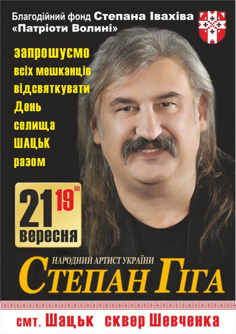 шачанам іще чекають незвичні подарунки від організаторів –концерт народного артиста України Степана Гіги, який розпочнеться об 19.00 годині, фаєр