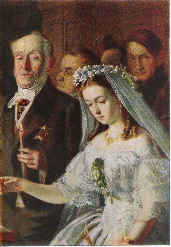 На фото з порталу «Super.ru» та фондів Третьяковської галереї: нерівний шлюб по-російськи зразка 1862-го і 2015-го.