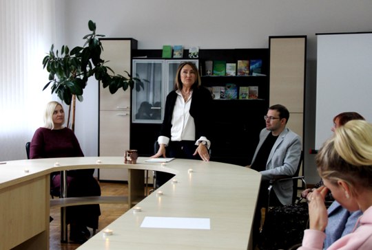 Майбутні вчительки сиділи за овальним столом в очікуванні іноземних гостей. Двері відчинилися, і в. о. зав кафедри філологічних дисциплін та методики викладання Оксана Данилюк запросила двох жінок і чоловіка, що швидко пройшли до вільних місць і відразу ж попросили присутніх сідати ближче.