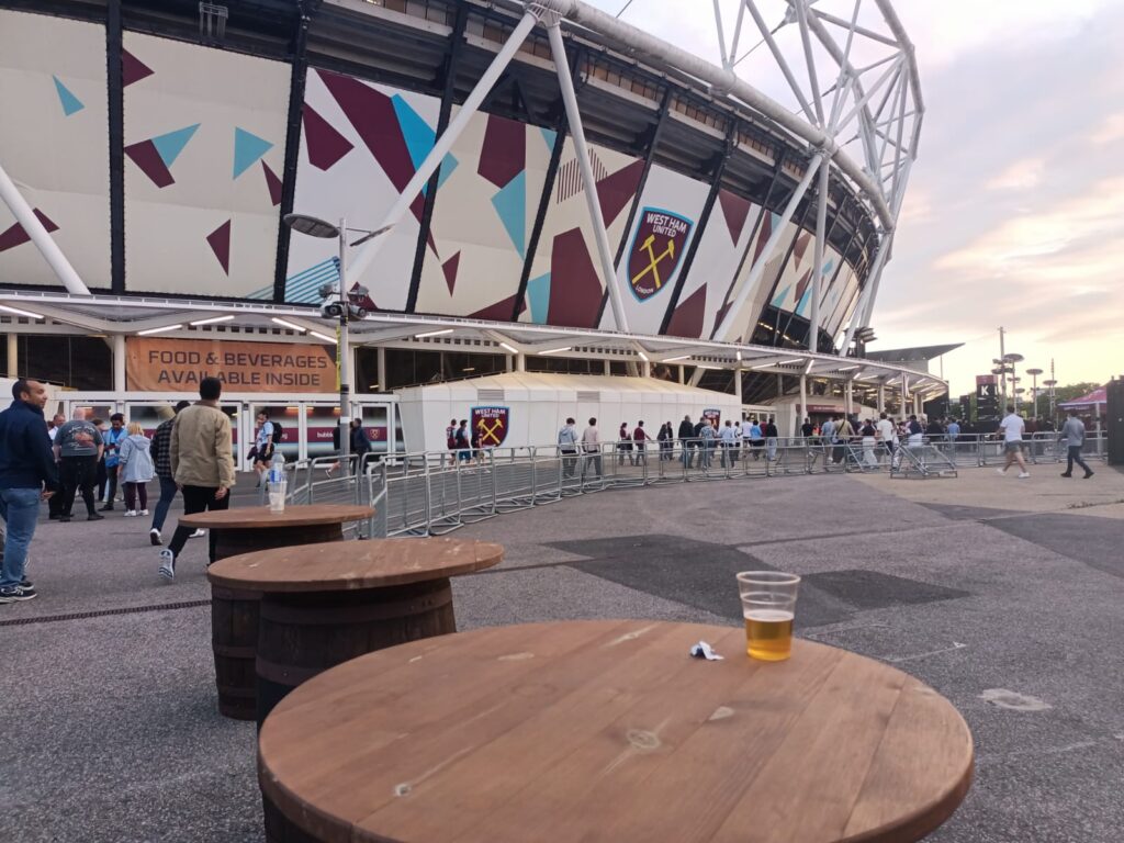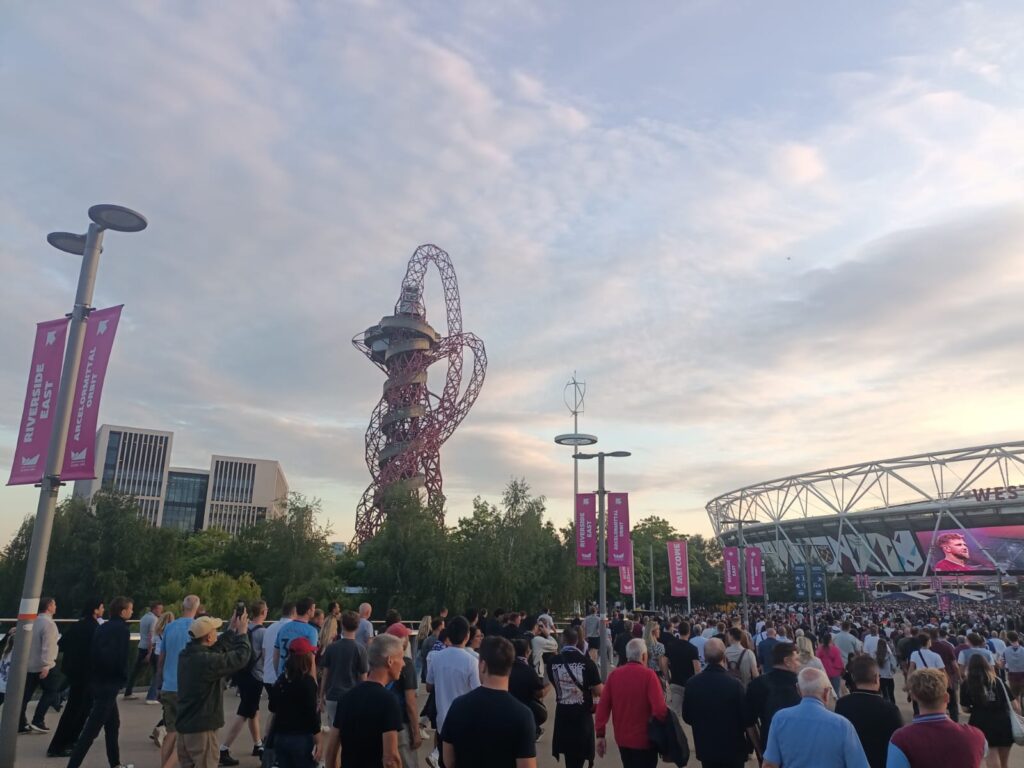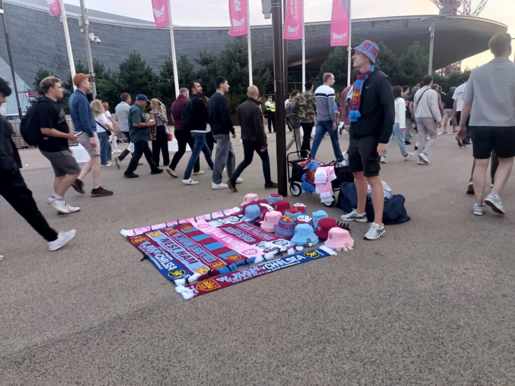 На фото з «Вікіпедії», відкритих джерел та авторки: традиційна церемонія попереднього періоду; платформа футбольного клубу в урочистій колоні; вболівальники біля входу на Олімпійський стадіон; сувенірна продукція «Вести Гем Юнайтед».
