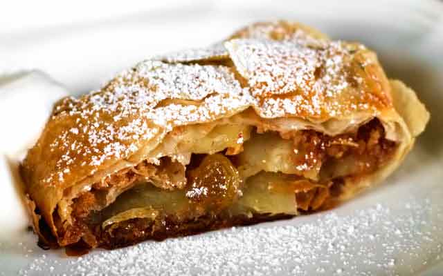 Викладаємо штрудель з лаваша на змащене маслом деко та запікаємо в розігрітій до 170 градусів духовці 20 хвилин.