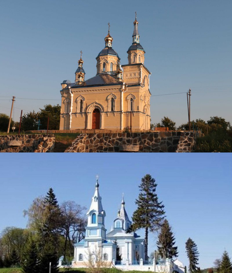 На фото з архіву та Романа УСТИМЧУКА: церква в с. Верхівка$ храм у с. Воротнів.