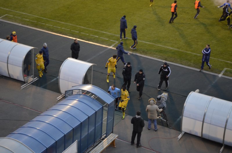 На фото Романа УСТИМЧУКА: горе-суддя Дмитро Кутаков утікає зі стадіону «Авангард»…
