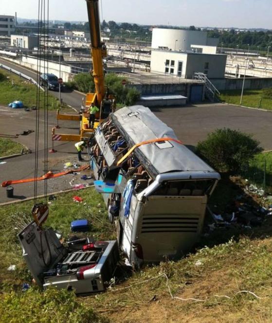На фото Юргена Мьоннеля («Більд»): рятувальники евакуюють понівечений польський автобус.