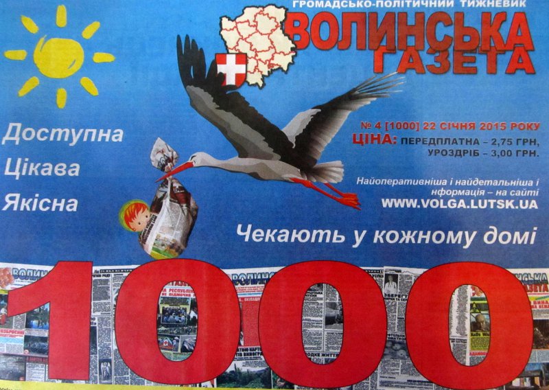 нагоди 1000-го номера «Волинської газети» приймаються позачергово протягом
