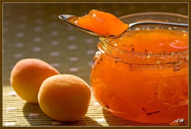 Апельсин змолоти разом зі шкіркою, додати до перемелених абрикосів, перемішати, довести до кипіння. Додати 1 скл. цукру, хай покипить 5 хв., далі –повторити такі дії ще тричі. Коли востаннє перекипить – відставити, розлити у банки і закрити.