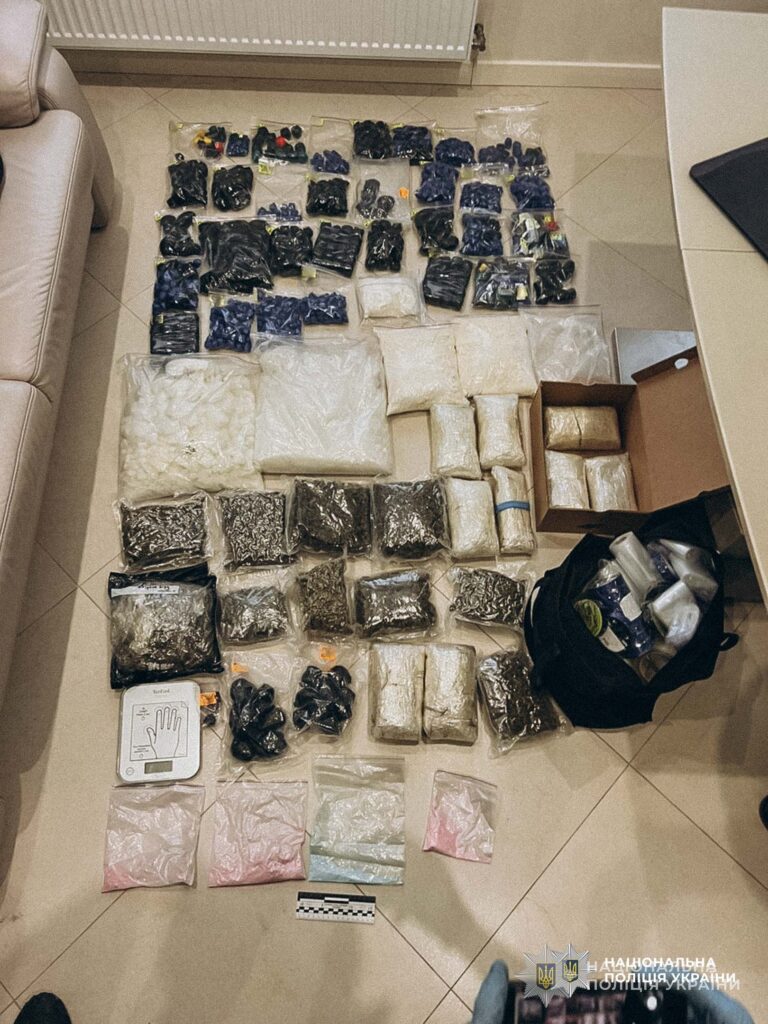 У результаті обшуків у зловмисників вилучили понад 57 кілограмів психотропних речовин альфа PVP, амфетаміну, канабісу, психотропної речовини МДМА, 200 зіп-пакетів із вмістом особливо небезпечної психотропної речовини та ряд інших доказів по справі, зокрема, банківські картки, електронні ваги, мобільні телефони тощо.
