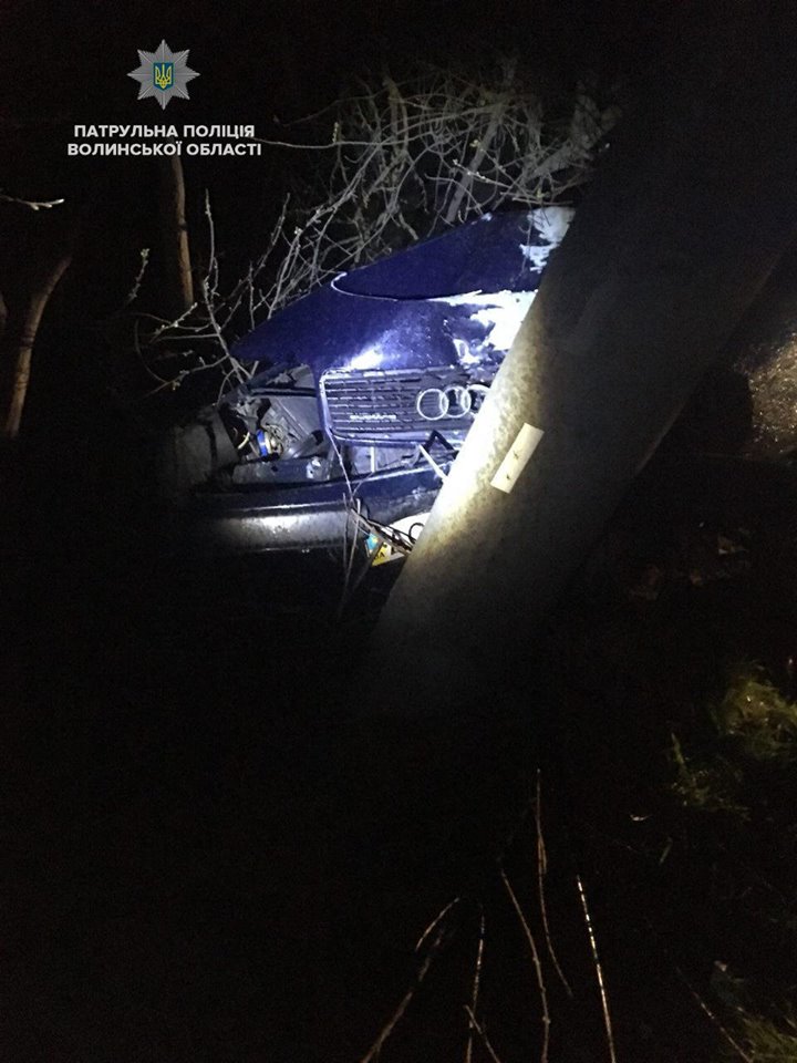 автодорозі Устилуг-Луцьк-Рівне, сталася ДТП. Audi зіткнувся з електроопорою.