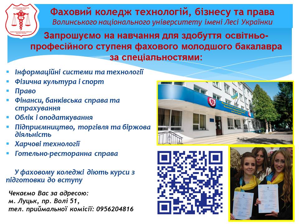 Консультацію та додаткову інформацію можна отримати за телефоном приймальної комісії: 0956204816 або на сайті Фахового коледжу.