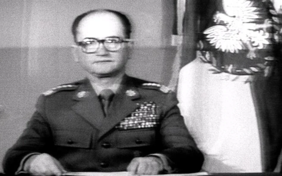 фото з архіву: Войцех Ярузельські в телевізійному виступі повідомляє про запровадження воєнного стану в ПНР.