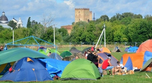 новини»: намети «Бандерштату» на тлі Замка Любарта.