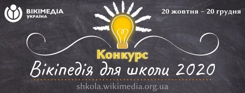 З 20 жовтня по 20 грудня 2020 року триватиме конкурс статей Вікіпедія для школи», що вдруге проводиться за ініціативи та підтримки  громадської організації «Вікімедіа Україна».