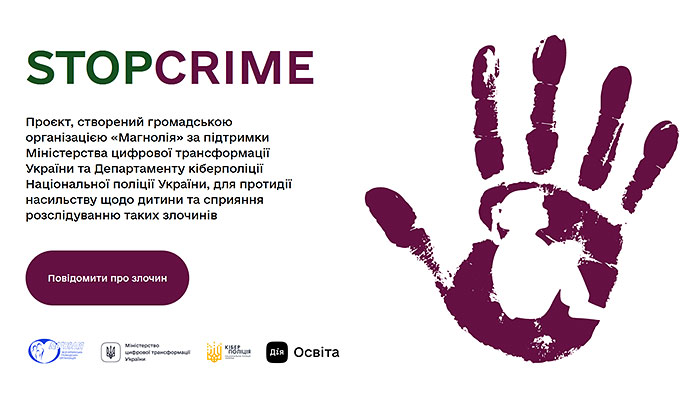 Проєкт StopCrime створений громадською організацією «Магнолія» за підтримки Міністерства цифрової трансформації України та Департаменту кіберполіції Національної поліції України.