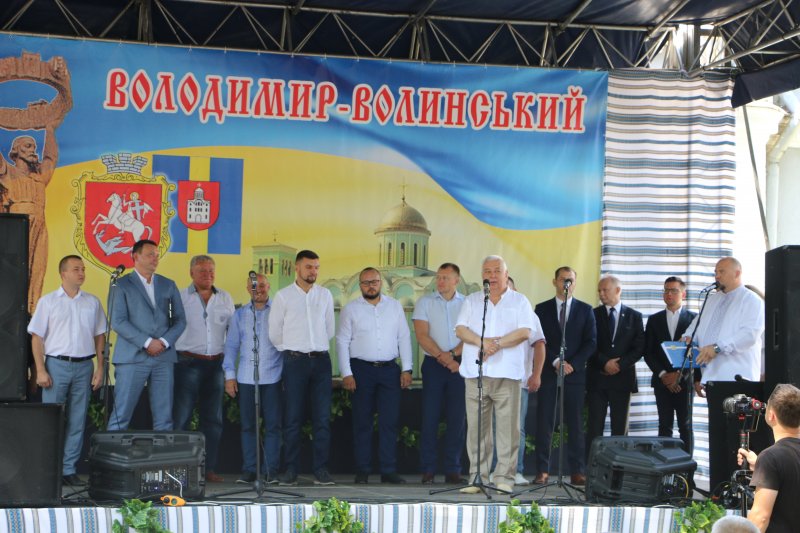 на сцену в скверику біля Історичного музею Володимир-Волинський міський голова Петро Саганюк запросив ВІП-достойників,
